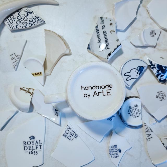 project is created using broken fragments of handmade pottery, each piece